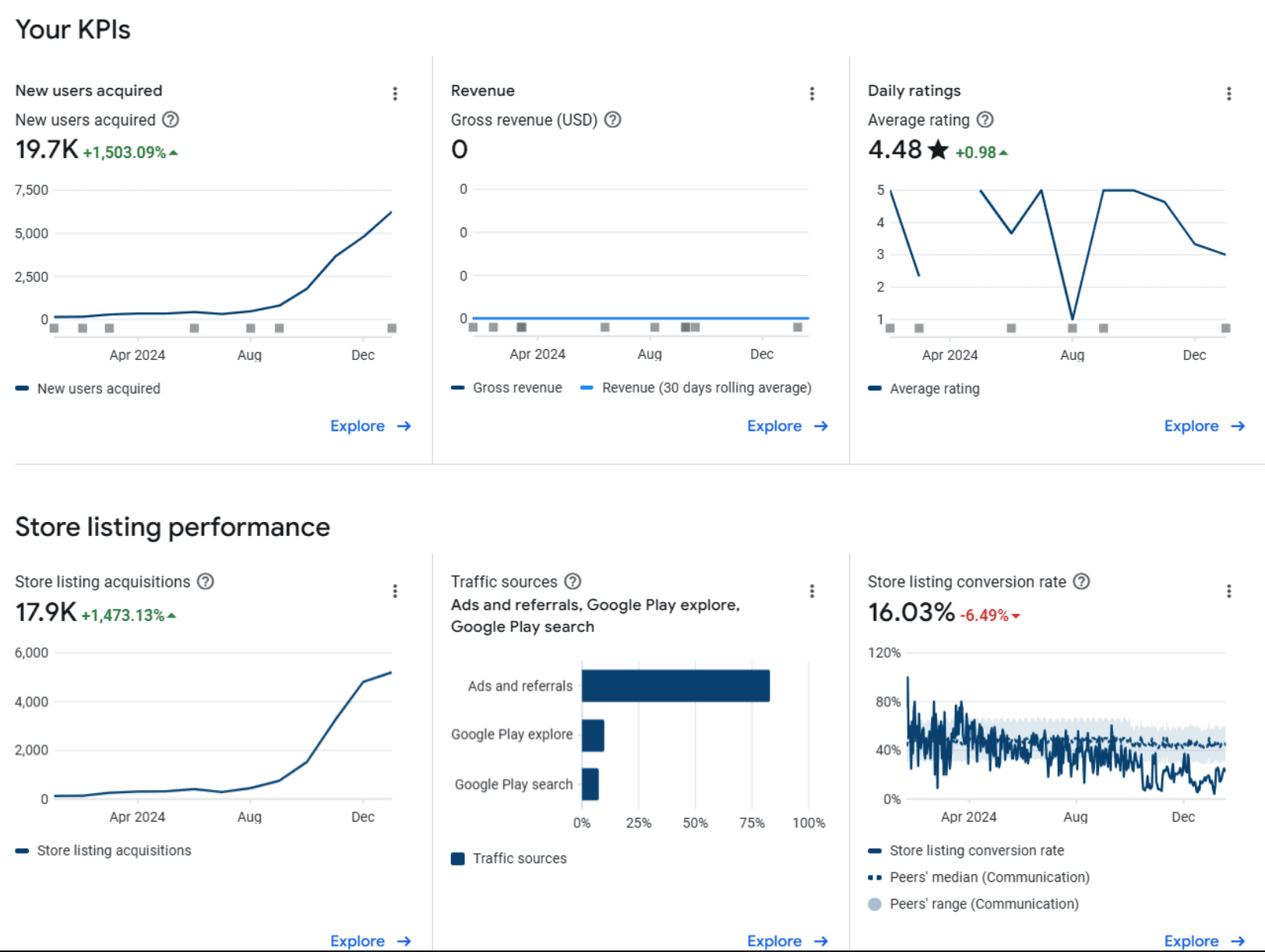 Downloads: +3,349% increase (from 6 to 13,790 Android downloads)